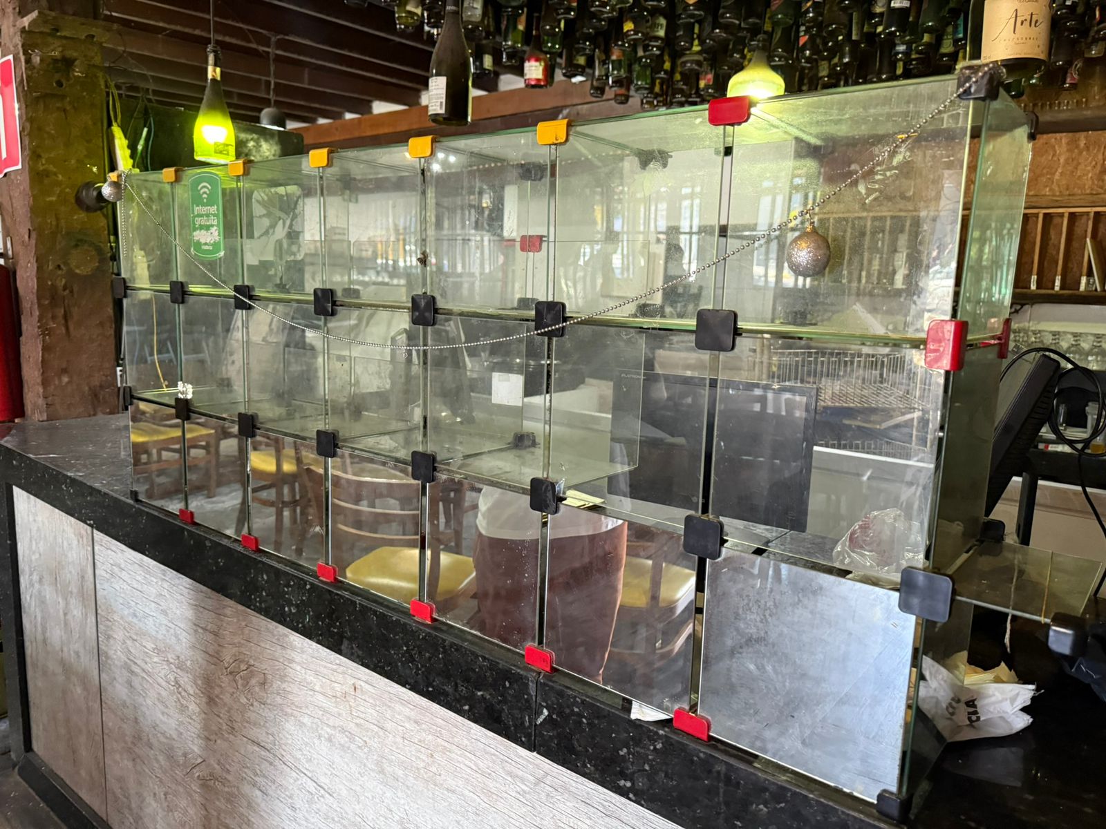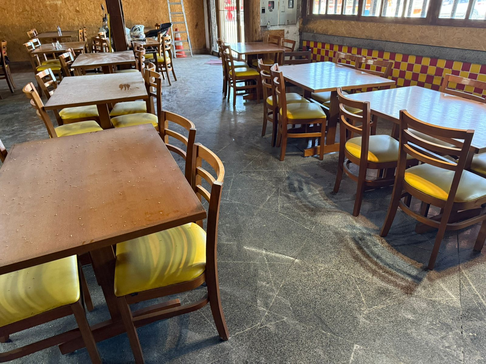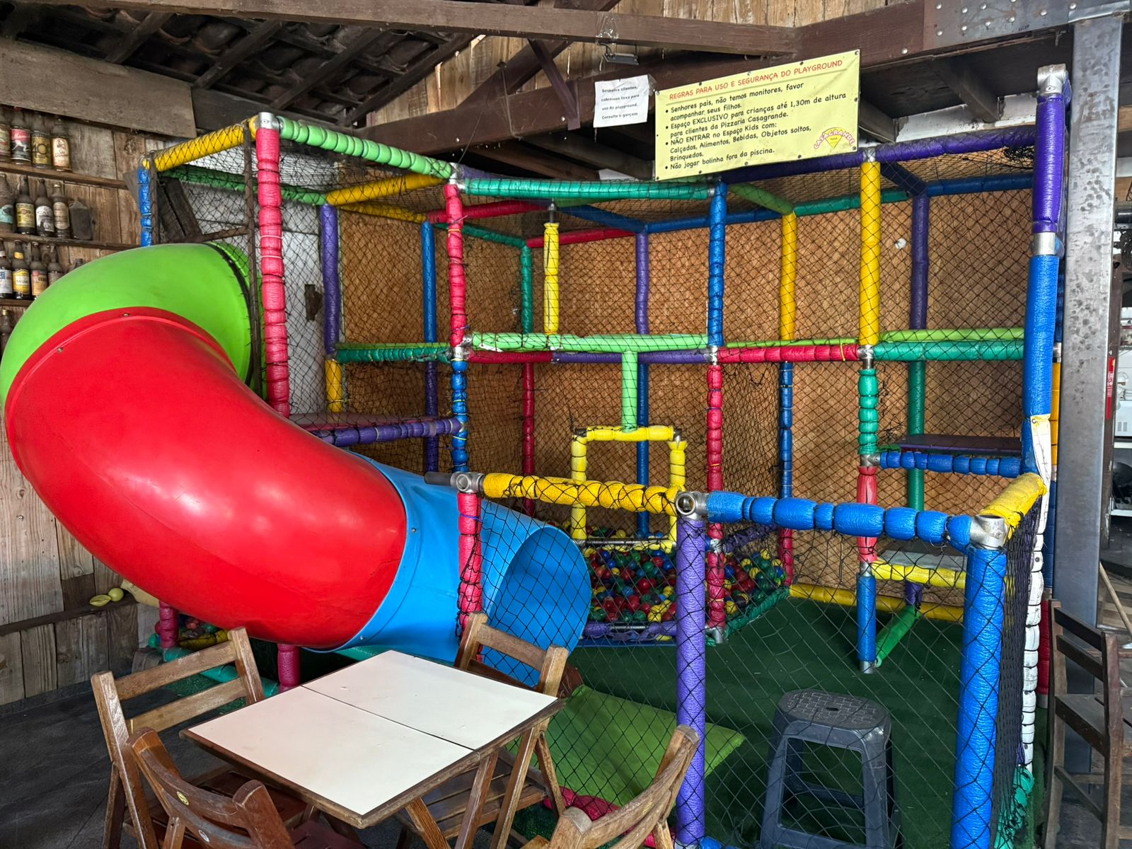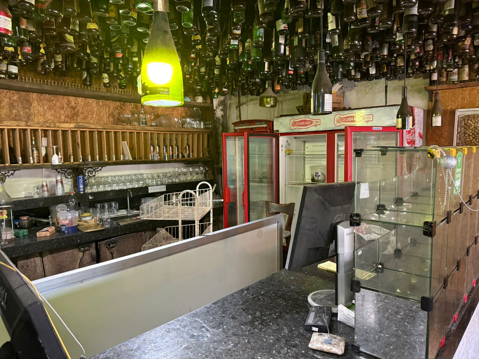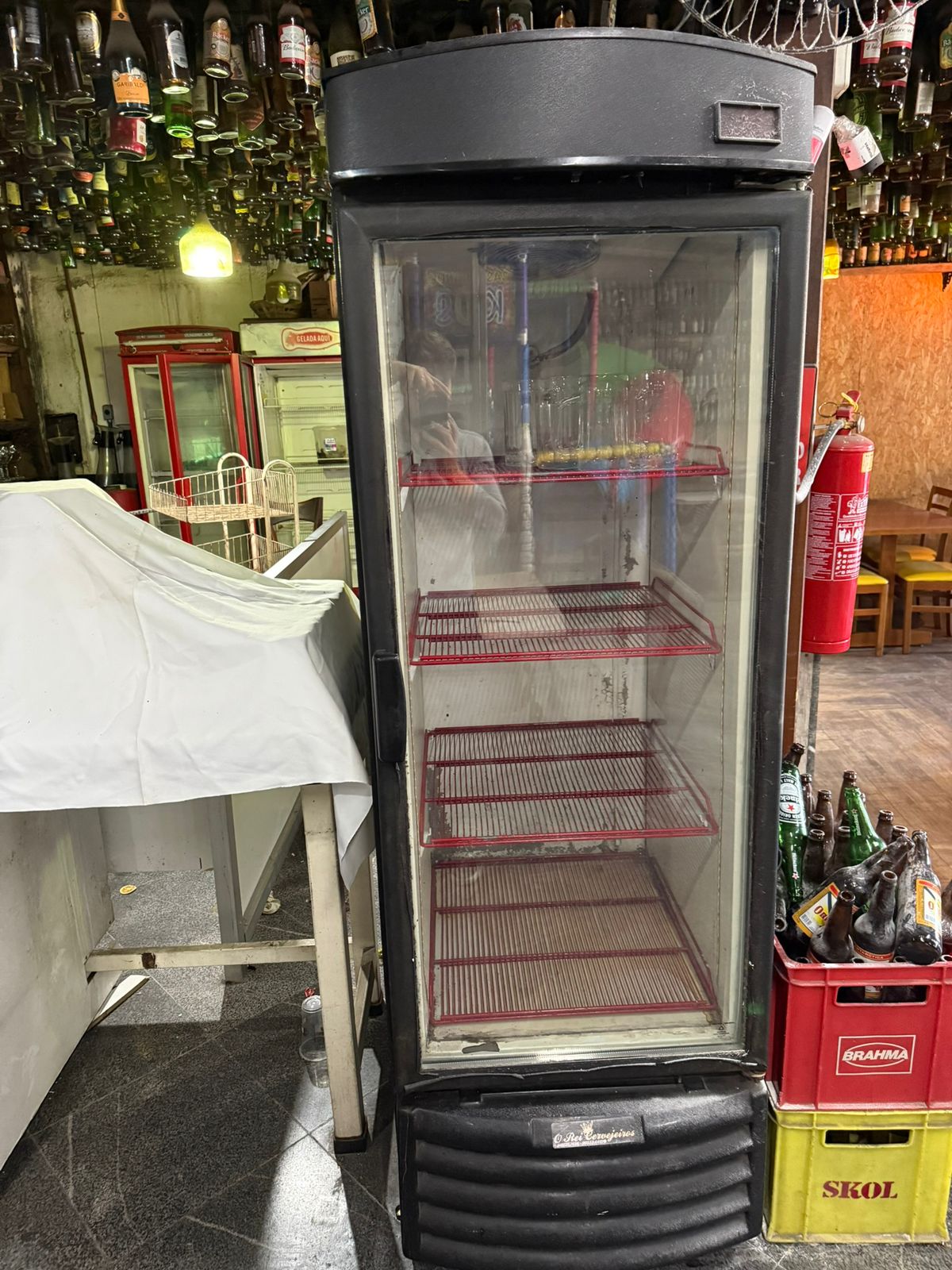 DOS BENS: LOTE 02: Lote composto por: 60 cadeiras com encosto e estofado amarelo, sem marca aparente, no estado em que se encontra; 01 playground infantil com escorregador e piscina de bolinha, sem marca aparente, no estado em que se encontra; 01 freezer preta vertical “COCA COLA”, sem marca aparente, no estado em que se encontra; 01freezer duplo vertical “COCA COLA”, sem marca aparente, no estado em que se encontra; 01 lote com diversas taças, canecas, garrafão de cachaça, copos, torres de chopp e jarras, sem marca aparente, no estado em que se encontra; 02 lote com diversos itens para restaurante: saleiro, paliteiro, porta guardanapo, chapas de ferro, tábua de madeira, tábuas de pedra, bandeja de garçom, garrafas vazias, lixeiras, escada e rodos, sem marca aparente, no estado em que se encontra; 01 fogão industrial com 04 bocas, sem marca aparente, no estado em que se encontra; 01 forno industrial elétrico com 02 portas, sem marca aparente, no estado em que se encontra; 01 fritadeira elétrica, sem marca aparente, no estado em que se encontra; 01 balança, sem marca aparente, no estado em que se encontra; 01 lote com diversos itens de cozinha: talheres, facas, tabuleiros, conchas, sem marca aparente, no estado em que se encontra; 02 exaustores industriais em inox, sem marca aparente, no estado em que se encontra; 01 armário escaninho em metal com 08 portas, sem marca aparente, no estado em que se encontra; 07 cadeiras de madeira de criança, sem marca aparente, no estado em que se encontra; 15 mesas sem marca aparente, no estado em que se encontra; 03 mesas brancas formato retrátil, sem marca aparente, no estado em que se encontra; 20 cadeiras formato retrátil, sem marca aparente, no estado em que se encontra; 05 mesas de madeira pequenas, sem marca aparente, no estado em que se encontra; 03 bancos altos de madeira, sem marca aparente, no estado em que se encontra; 01 mesa alta de madeira, sem marca aparente, no estado em que se encontra; 01 mesa grande de madeira colonial, sem marca aparente, no estado em que se encontra; 02 bancos grandes de madeira colonial, sem marca aparente, no estado em que se encontra; 01 televisão aproximadamente 30 polegadas, AOC, no estado em que se encontra; 01 micro-ondas, branco, ELECTROLUX, bom estado de conservação; 01 fatiador de frios, sem marca aparente, no estado em que se encontra; 01 freezer horizontal, branco, ELECTROLUX, no estado em que se encontra; 02 freezers verticais plotado da marca “COCA COLA”, sem marca aparente, no estado em que se encontra; 02 monitores antigos, DELL, no estado em que se encontra; 01 monitor antigo, SAMSUNG, no estado em que se encontra; 01 monitor antigo pequeno, LG, no estado em que se encontra; 04 caixas de som pequenas , sem marca aparente, no estado em que se encontra; 04 ventiladores fixos, sem marca aparente, no estado em que se encontra; 01 expositor de vidro com 21 posições, sem marca aparente, no estado em que se encontra; 01 quadro de vidro com rolhas, sem marca aparente, no estado em que se encontra.