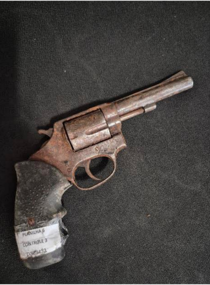 DESCRIÇÃO DOS BENS : Lote 02: Revólver calibre 38, ROSSI, 5 tiros: D270494, D270634, D363432, 270023, D378032, D378070, AA450847, AA450741, AA450757, AA450840, AA450765, AA450789, cada unidade avaliada em R$ 450,00.