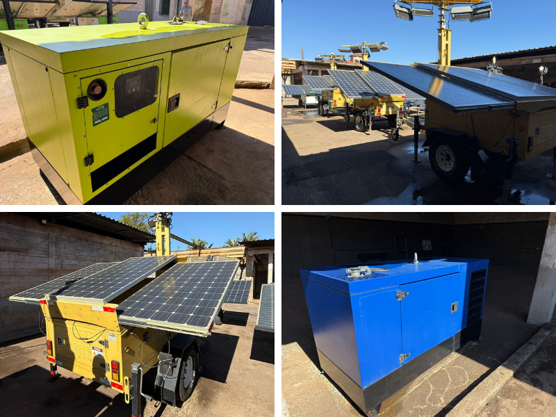 GERADORES DISESEL 59 KVA + DIVERSAS TORRES DE ILUMINAÇÃO (BATERIA DE LÍTIO, CHUMBO OU DIESEL)